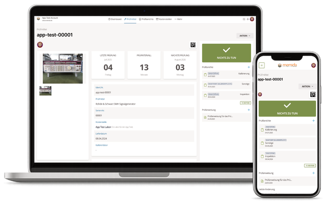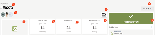 Im oberen Bereich der Seite werden die wichtigsten informationen zum Prüfmittel angezeigt.