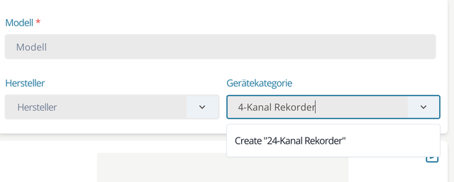 Setzen Sie den Cursor in das Engabefeld "Modell" und beginnen Sie, die Bezeichnung des Geräts einzugegben. Wenn Sie fertig sind, können Sie den Gerätetyp auswählen oder neu anlegen.